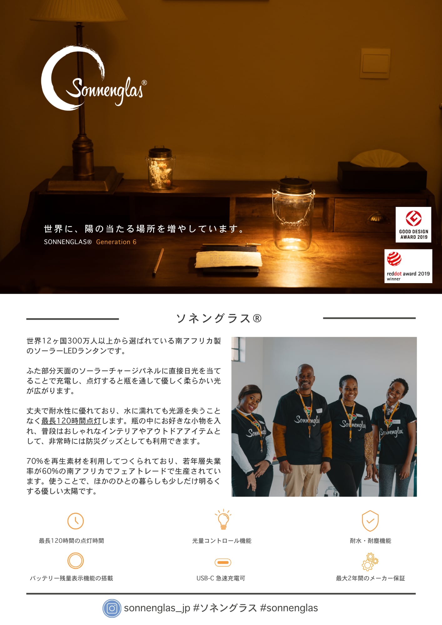 南アフリカでフェアトレードで手作りされた電池不要のソネングラス®︎