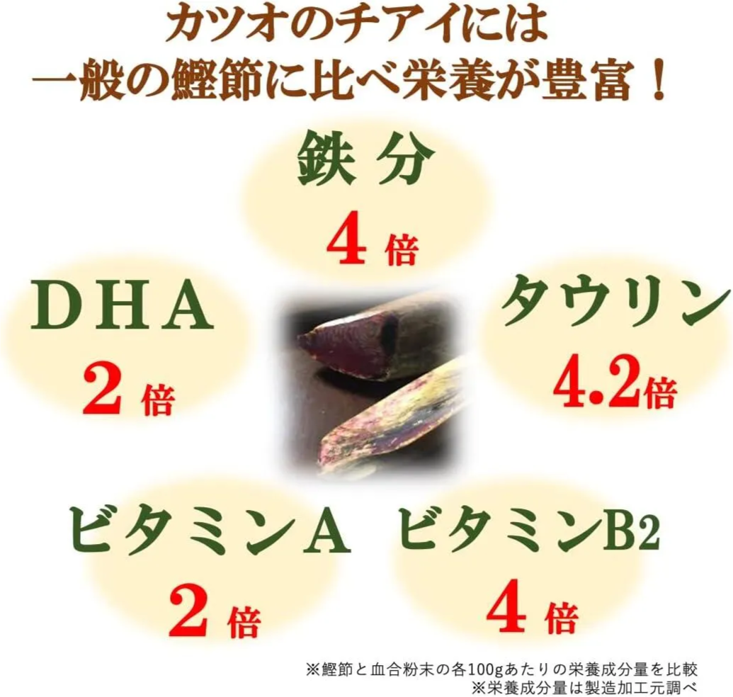 かつおの血合いを使用し、かつおの魅力「栄養価」をギュッと濃縮した