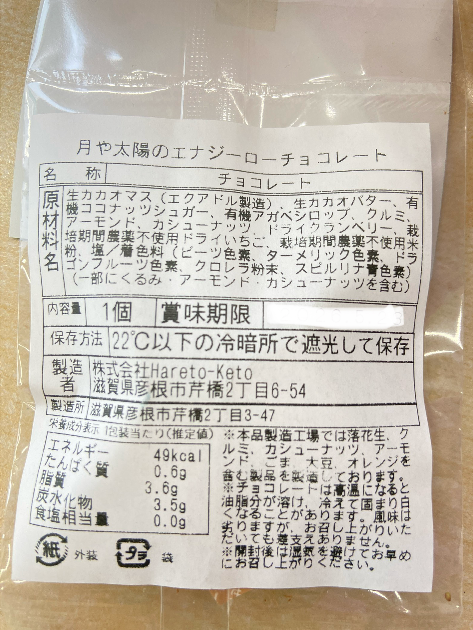 ◯ 月と太陽のエナジーローチョコレート(賞味期限2026.6.7)